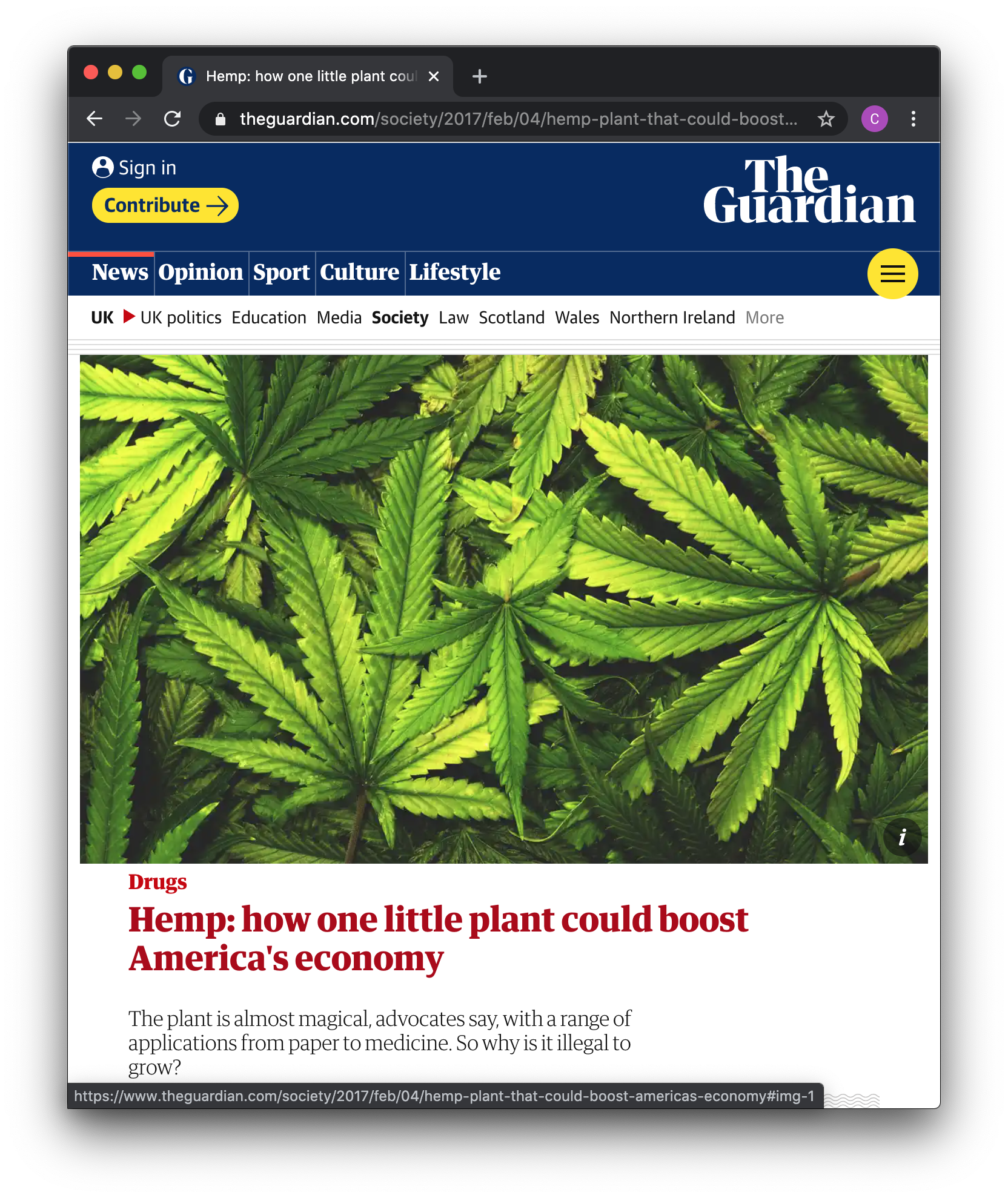Reference: Miller, S. (2017, February 4). Hemp: how one little plant could boost America's economy. The Guardian